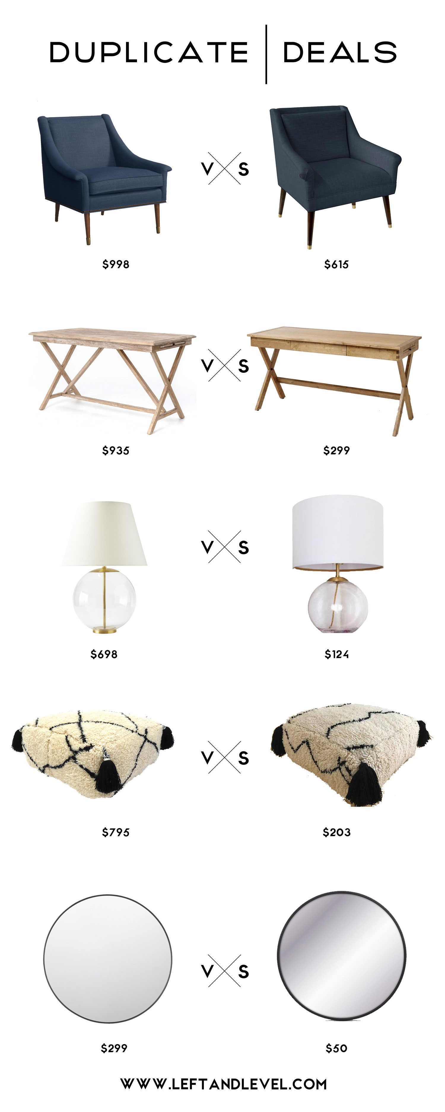 Popping in this Saturday for a quick Duplicate Deals round up! I’ve had office spaces on the brain, and after collecting some of my ‘duplicate’ finds, I realized they would be perfect pieces for a chic, eclectic work space. This is just one of many inspiring spaces I’ve been hoarding on my Pinterest: